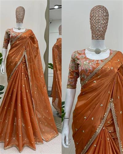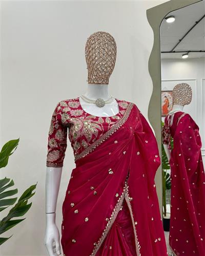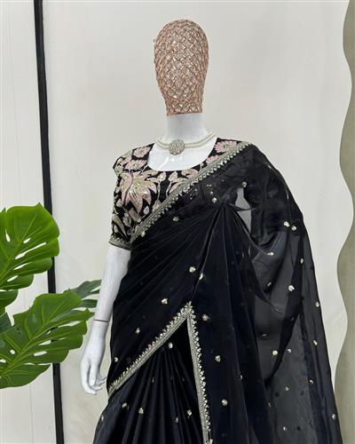 SAREE : PURE SOFT ZIMMY CHOO SILK FABRIC ON BEAUTIFUL EMBROIDERY ZARI AND SEQUENCES WORK WITH HEAVY WORK BORDER IN SAREE