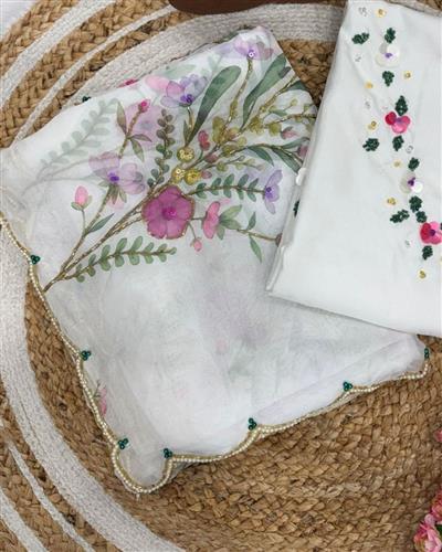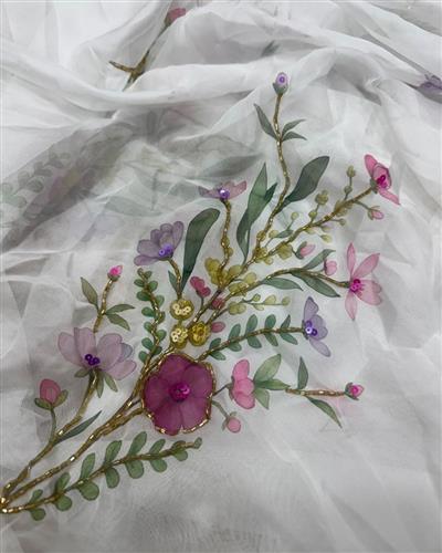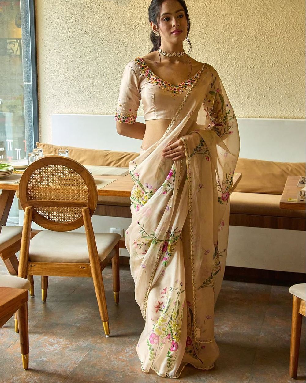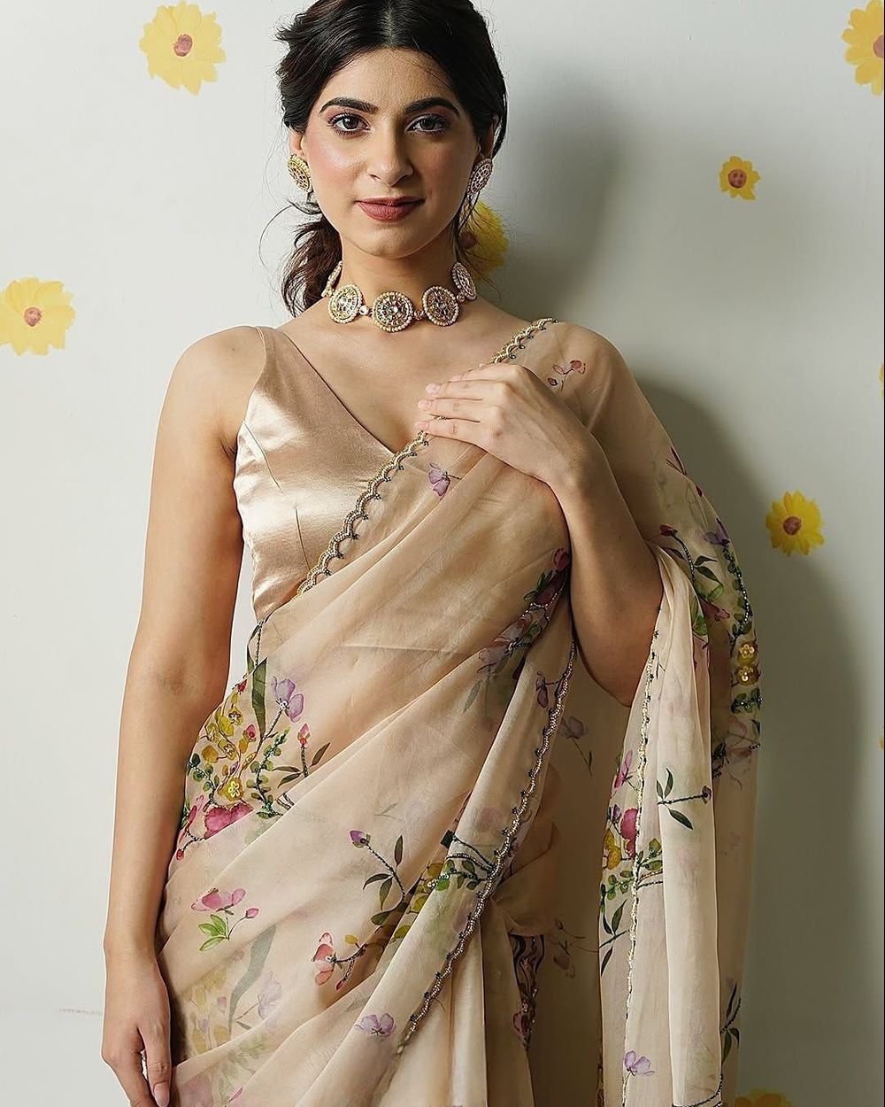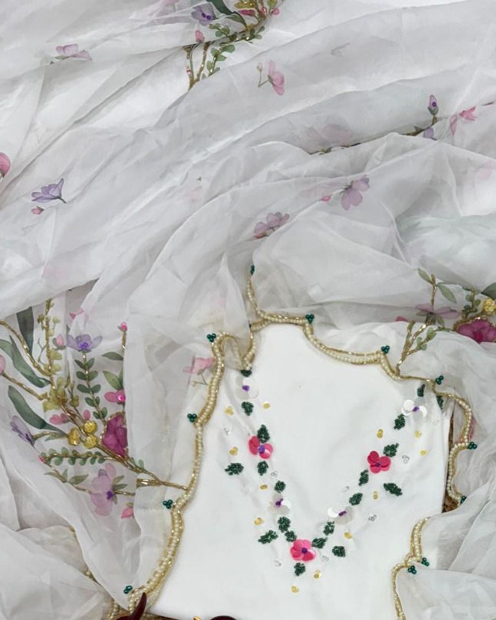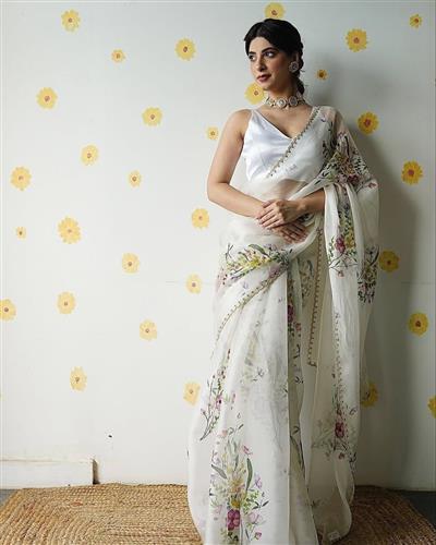 ➡️ SAREE : HEAVY SOFT TABBY SILK FABRIC ON BEAUTIFUL DIGITAL FLORAL PRINT WITH SEQUENCES AND KATDANA HANDWORK WITH CUT WORK BORDER ON SAREE