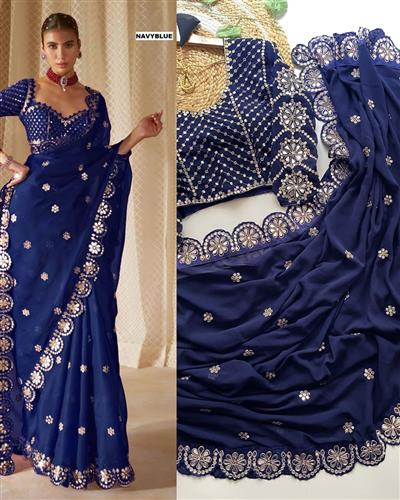 ✨ SAREE :- HEAVY SOFT GEORGETTE FABRIC ON BEAUTIFUL EMBRODERY SEQUANCE WITH CODING WORK IN LACE WITH CUT WORK BORDER WITH ORIGINAL REAL MIRROR WORK ON SAREE