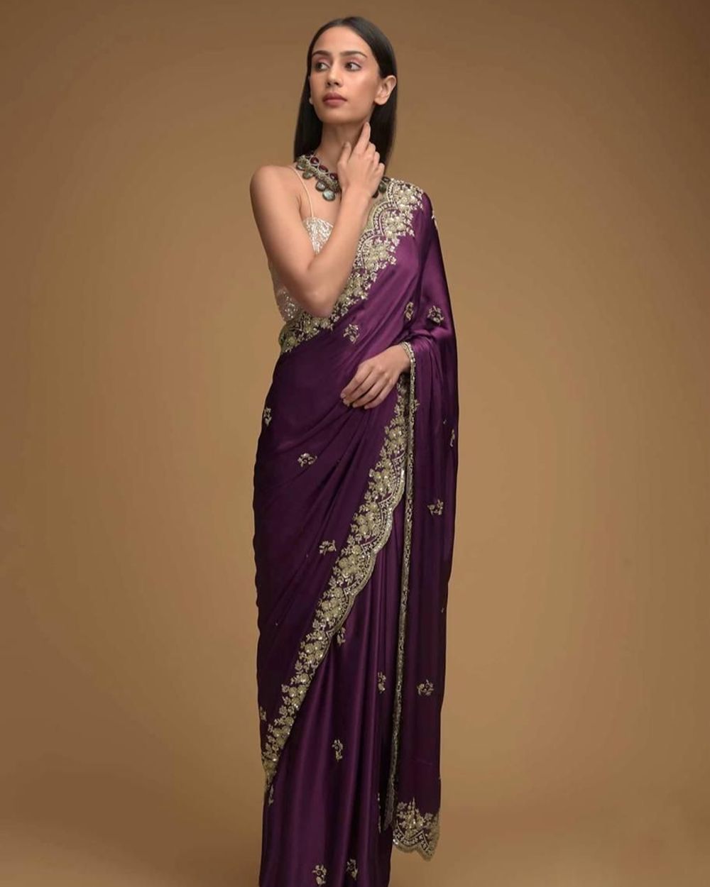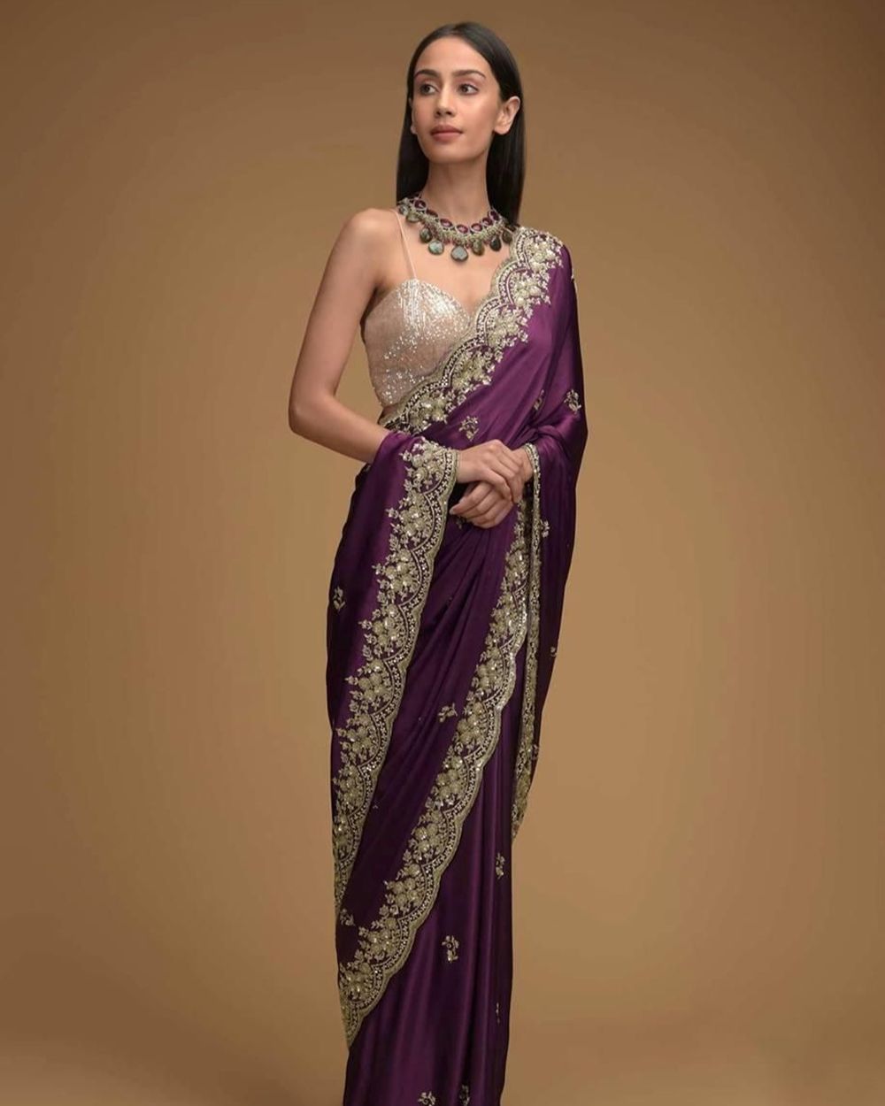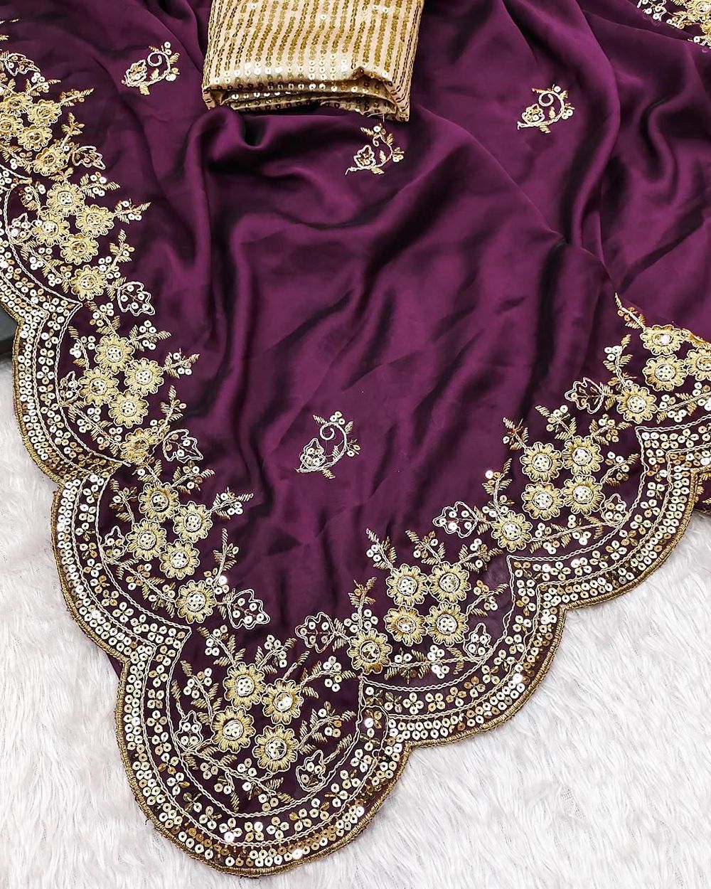 BLOUSE : HEAVY MONO BANGLORY SILK FABRIC ON HEAVY EMBRODAIRY ALL OVER SEQUENCE WORK ON BLOUSE
