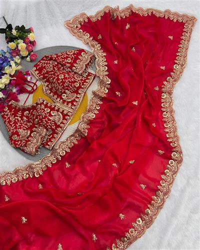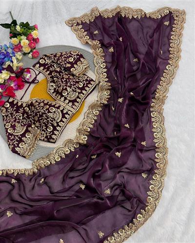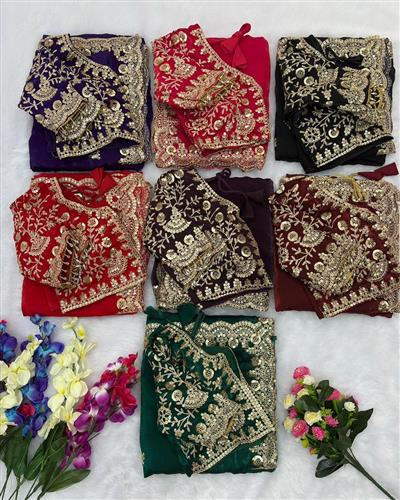 SAREE : PURE SOFT FANDY SATIN SILK FABRIC ON BEAUTIFUL C-PALLU EMBROIDERY SEQUENCES AND CODING WORK WITH CUT WORK BORDER IN SAREE