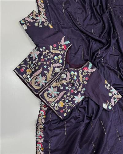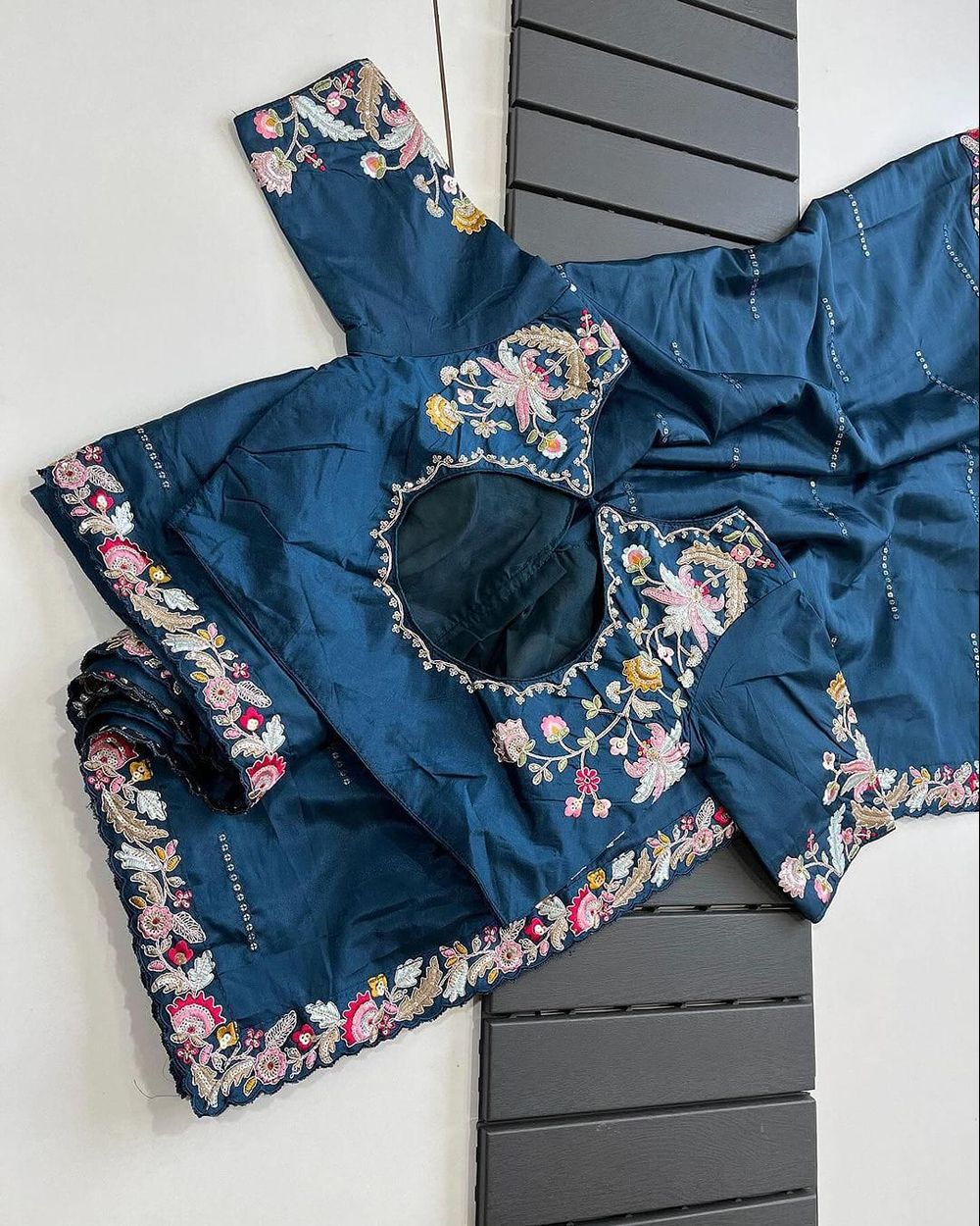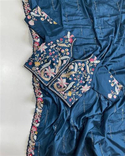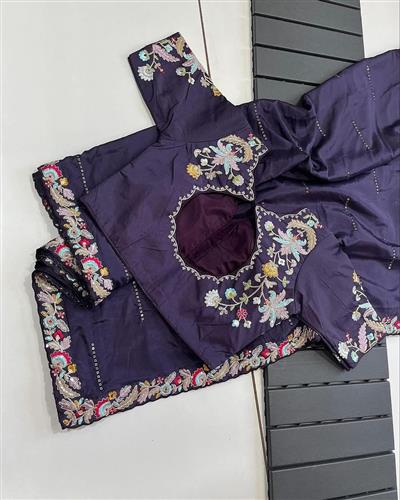 BLOUSE : HEAVY MONO BANGLORY SILK FABRIC ON BEAUTIFUL EMBROIDERY 5 MM SEQUENCES WITH MULTI THREAD WORK ON BLOUSE