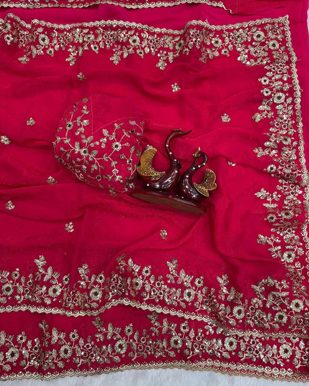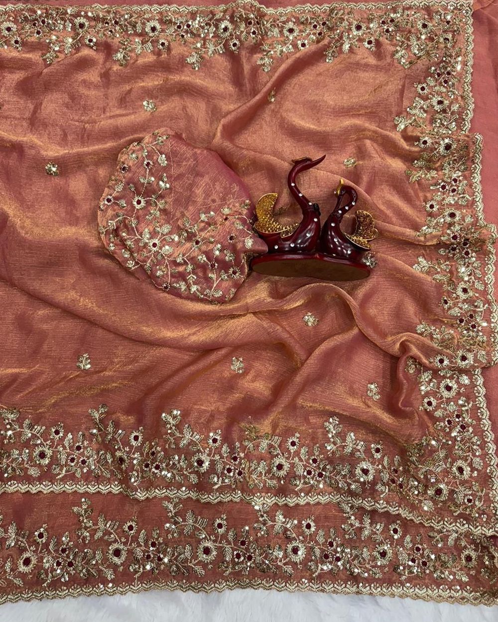 ➡️ SAREE : HEAVY SOFT FANDY CHIFFON SILK FABRIC ON HEAVY EMBROIDERY C-PALLU ZARI & SEQUENCES WORK WITH CUT WORK BORDER ON SAREE