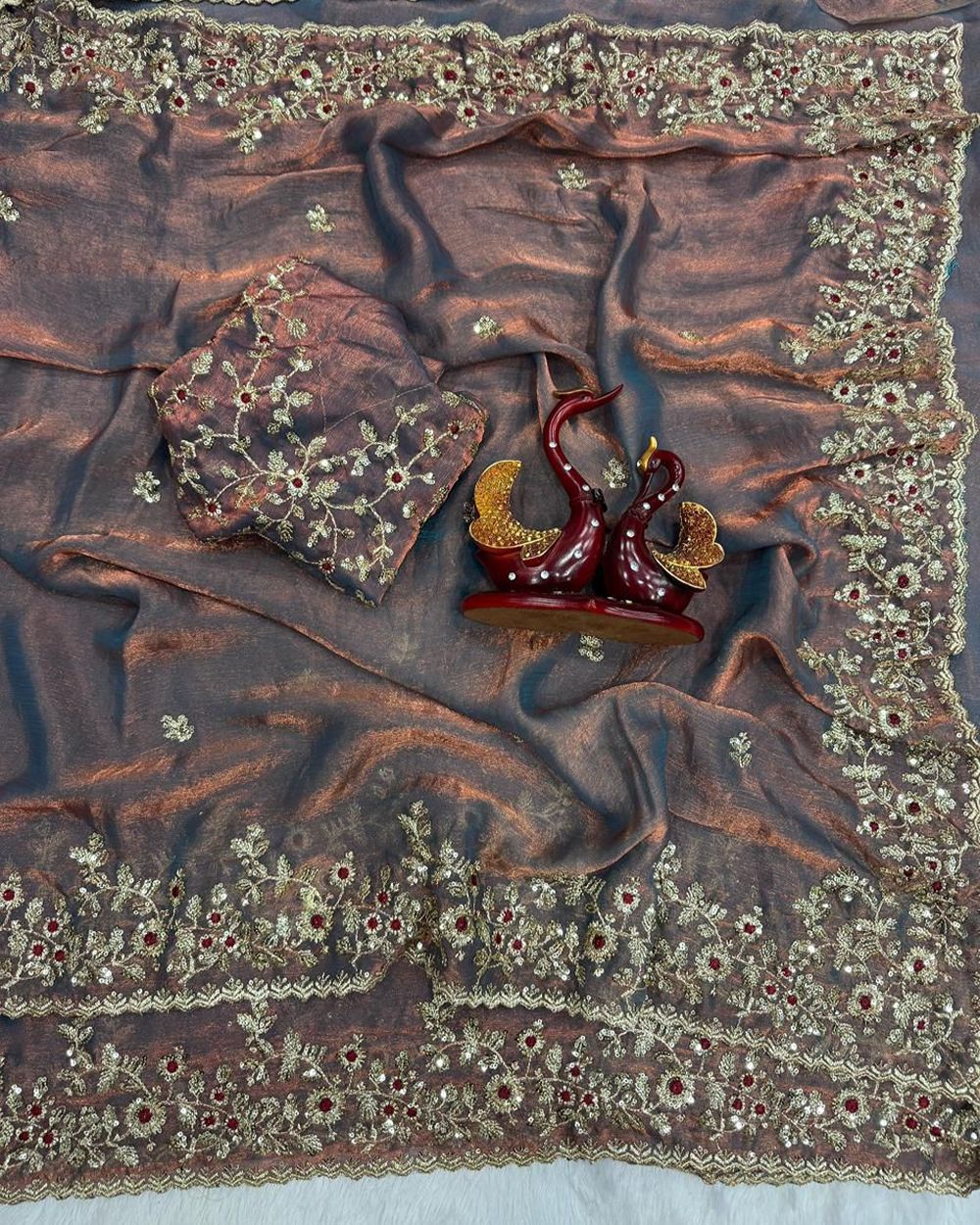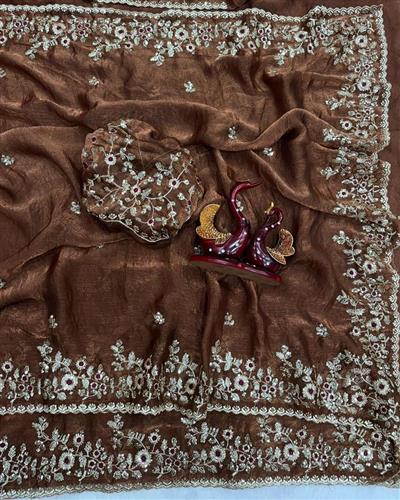 ➡️ BLOUSE : HEAVY SOFT FANDY CHIFFON SILK FABRIC ON EMBROIDERY ZARI & SEQUENCES WORK ON BLOUSE