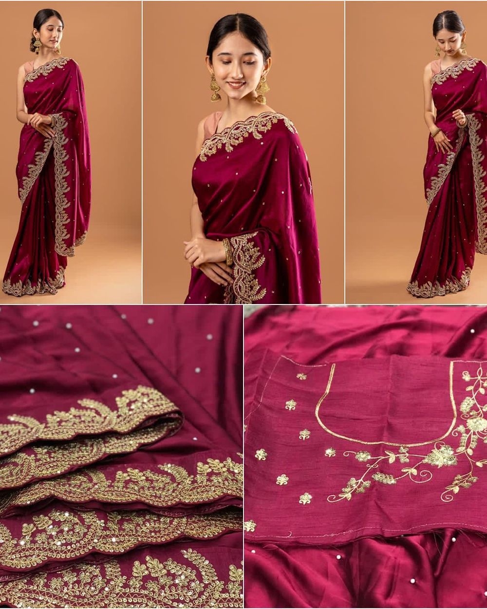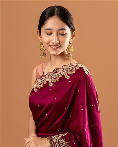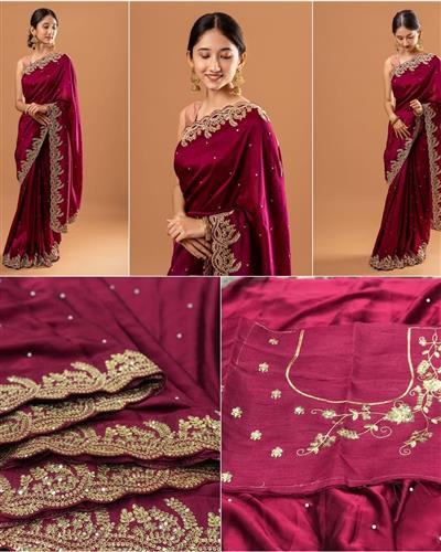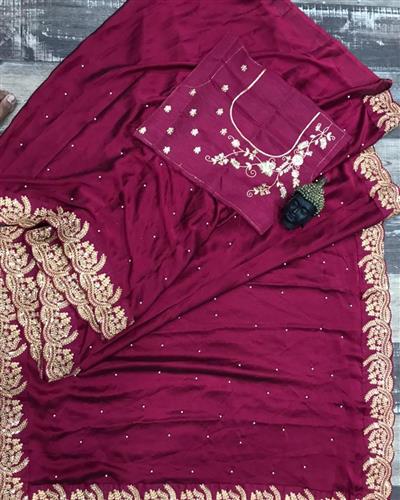 ✨ BLOUSE :- HEAVY SATIN SILK FABRIC ON EMBRODERY THREAD, ZARI WITH SEQUANCE WORK ON SAREE