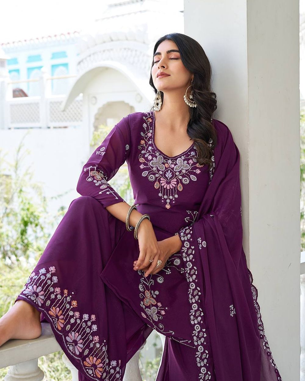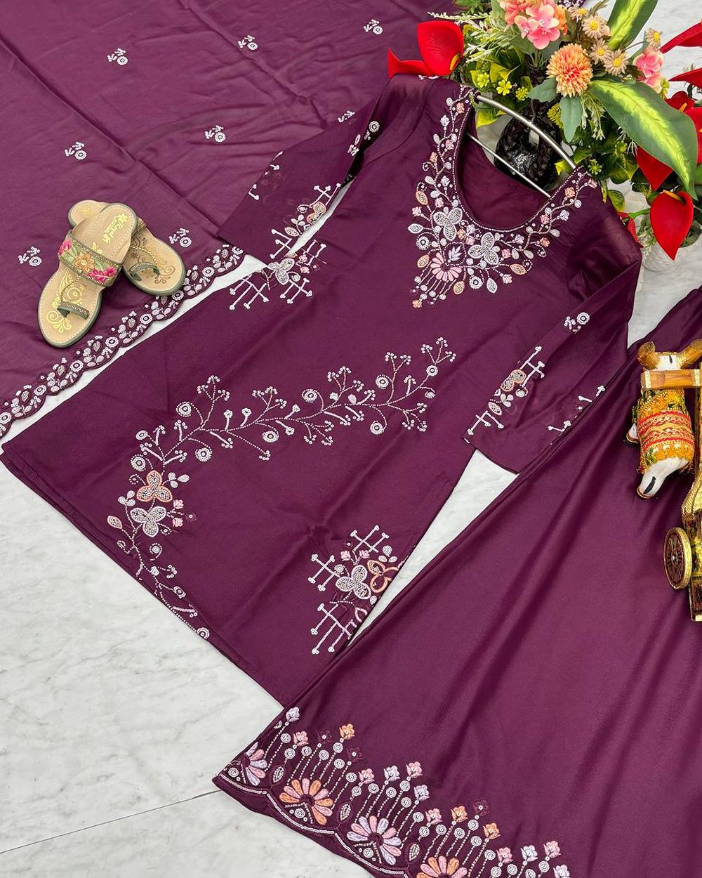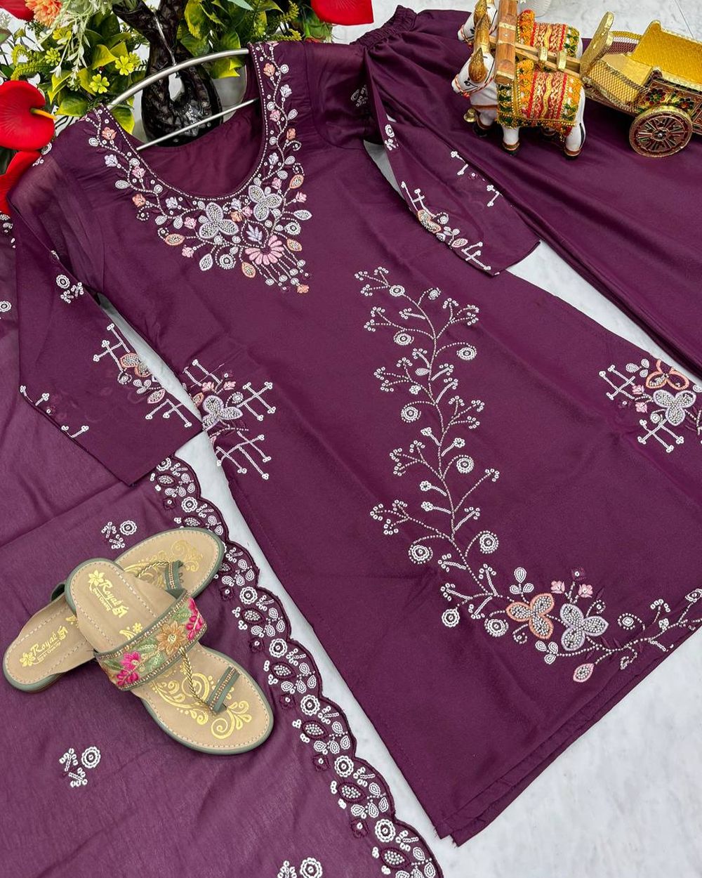 Launching New Designer moti work kurti Plazzo & Dupatta Set 103