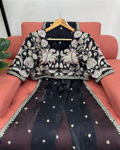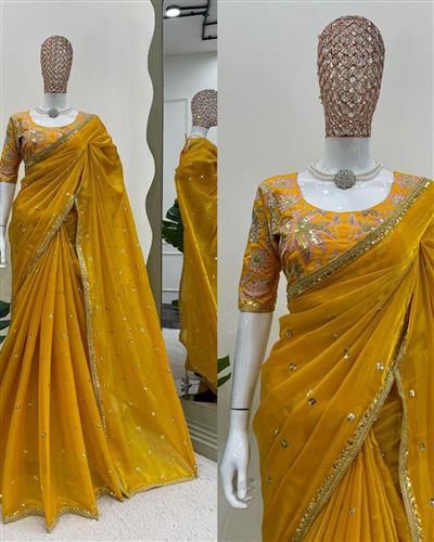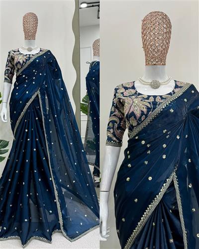 SAREE : PURE SOFT ZIMMY CHOO SILK FABRIC ON BEAUTIFUL EMBROIDERY ZARI AND SEQUENCES WORK WITH HEAVY WORK BORDER IN SAREE