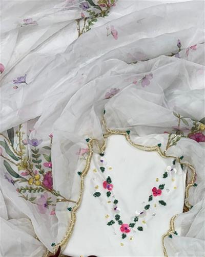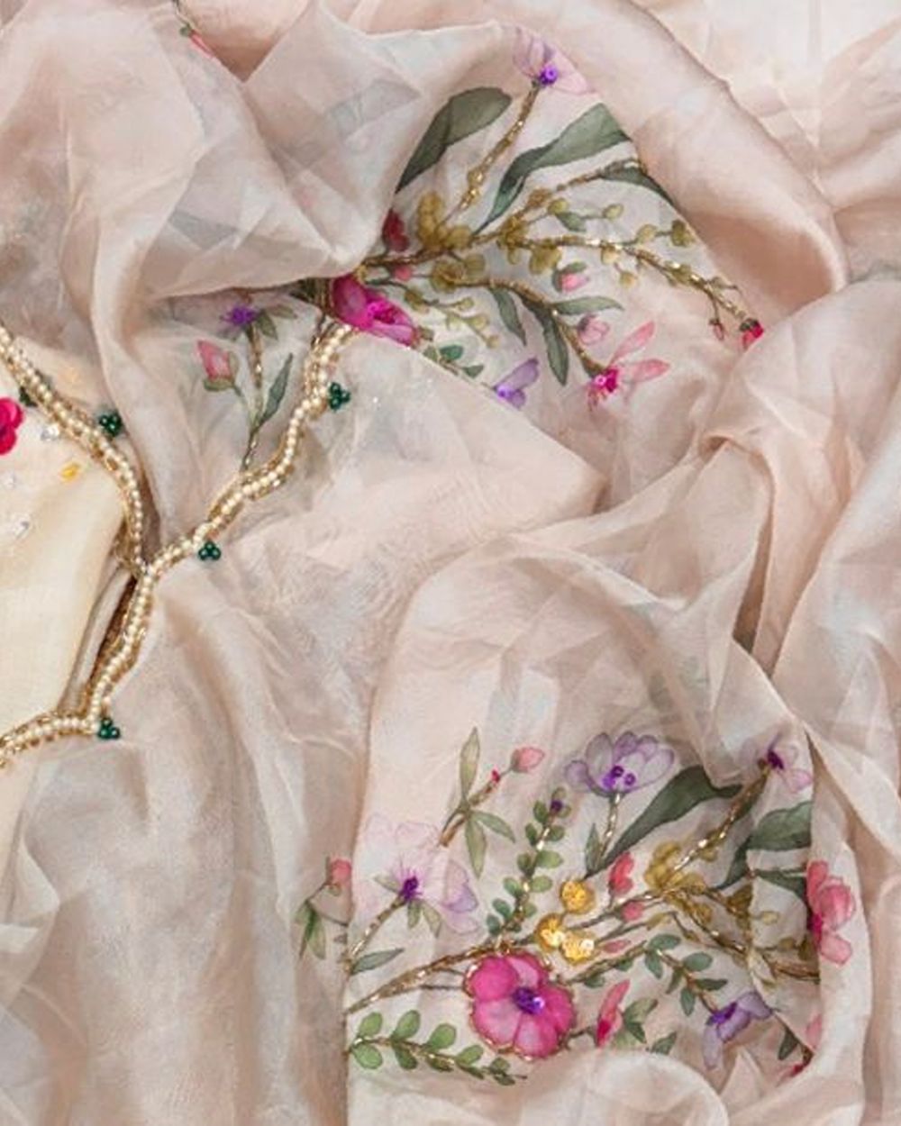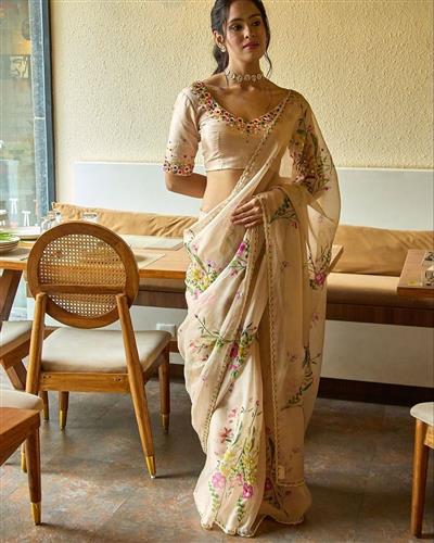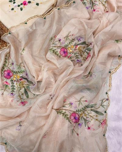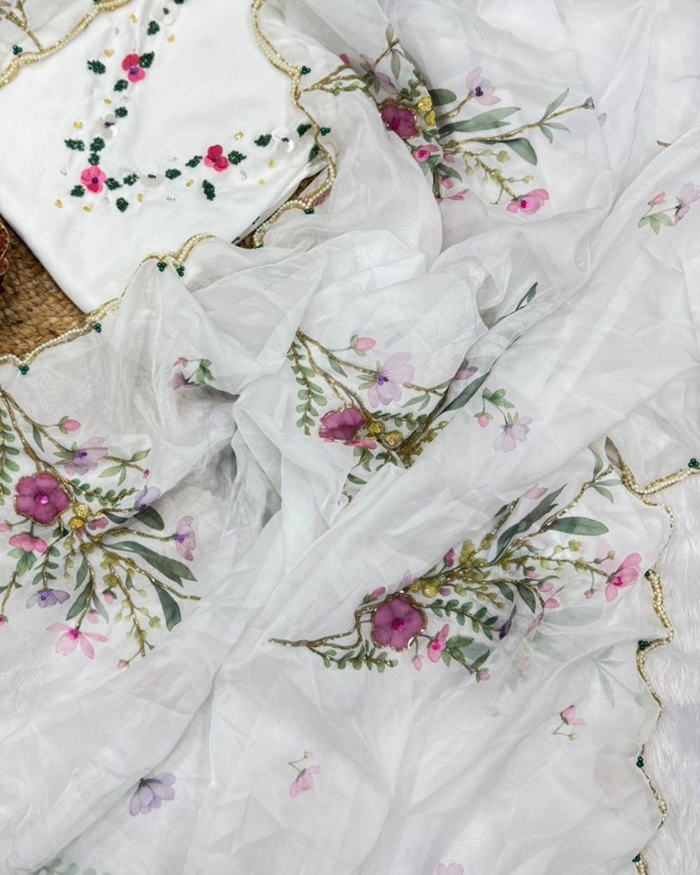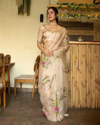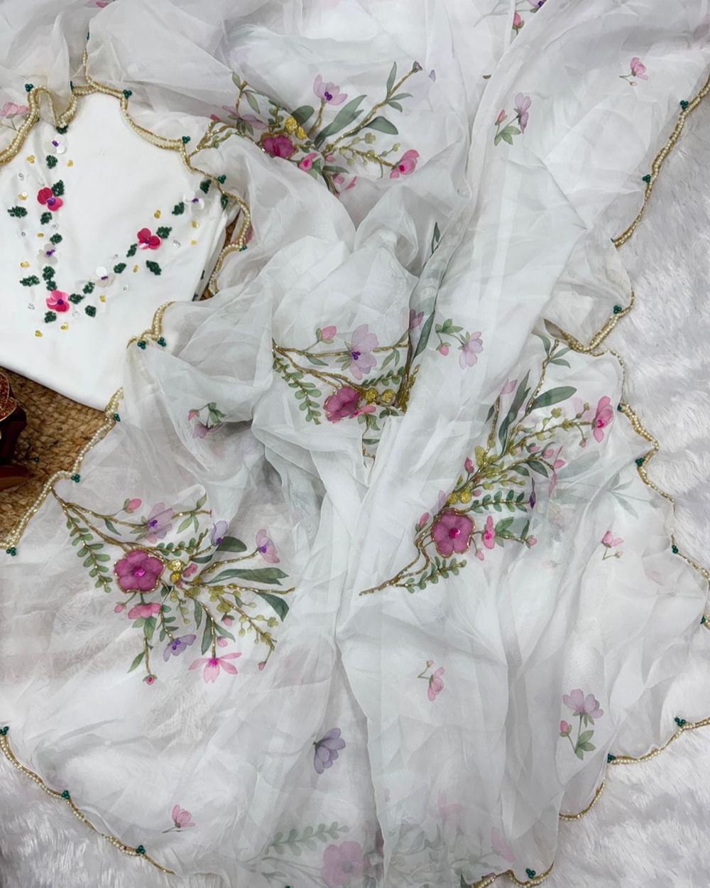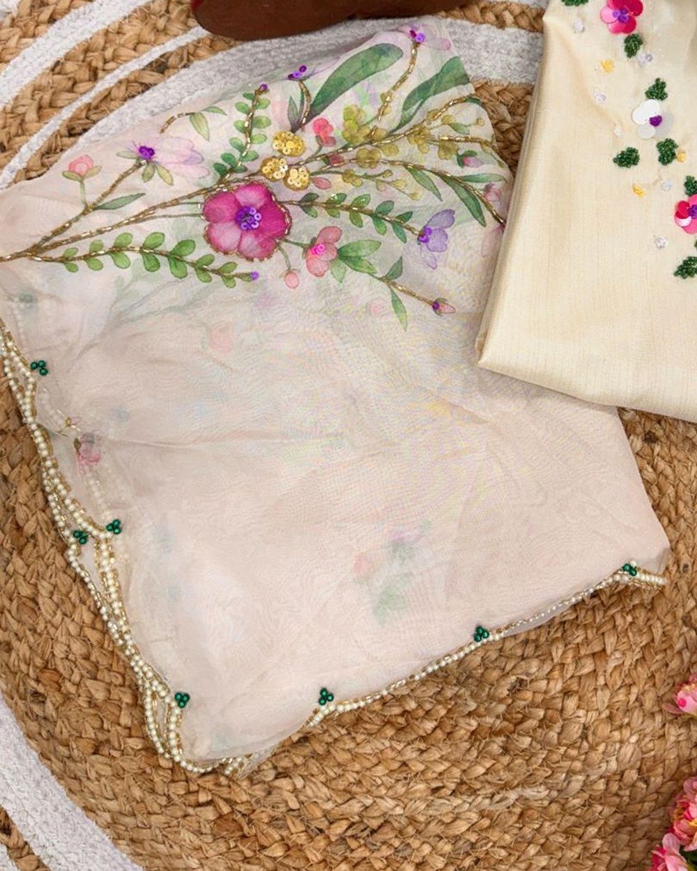 ➡️ SAREE : HEAVY SOFT TABBY SILK FABRIC ON BEAUTIFUL DIGITAL FLORAL PRINT WITH SEQUENCES AND KATDANA HANDWORK WITH CUT WORK BORDER ON SAREE