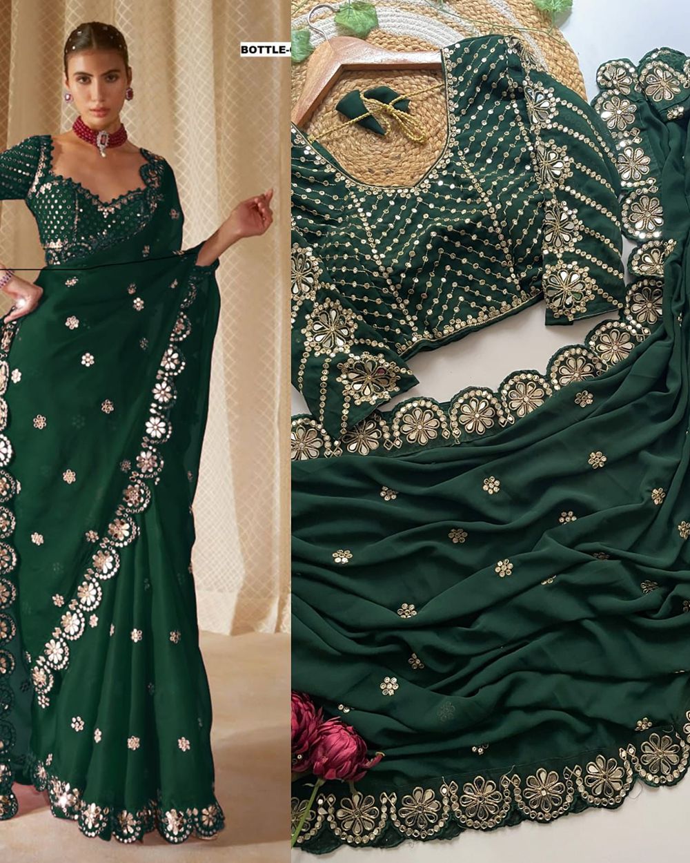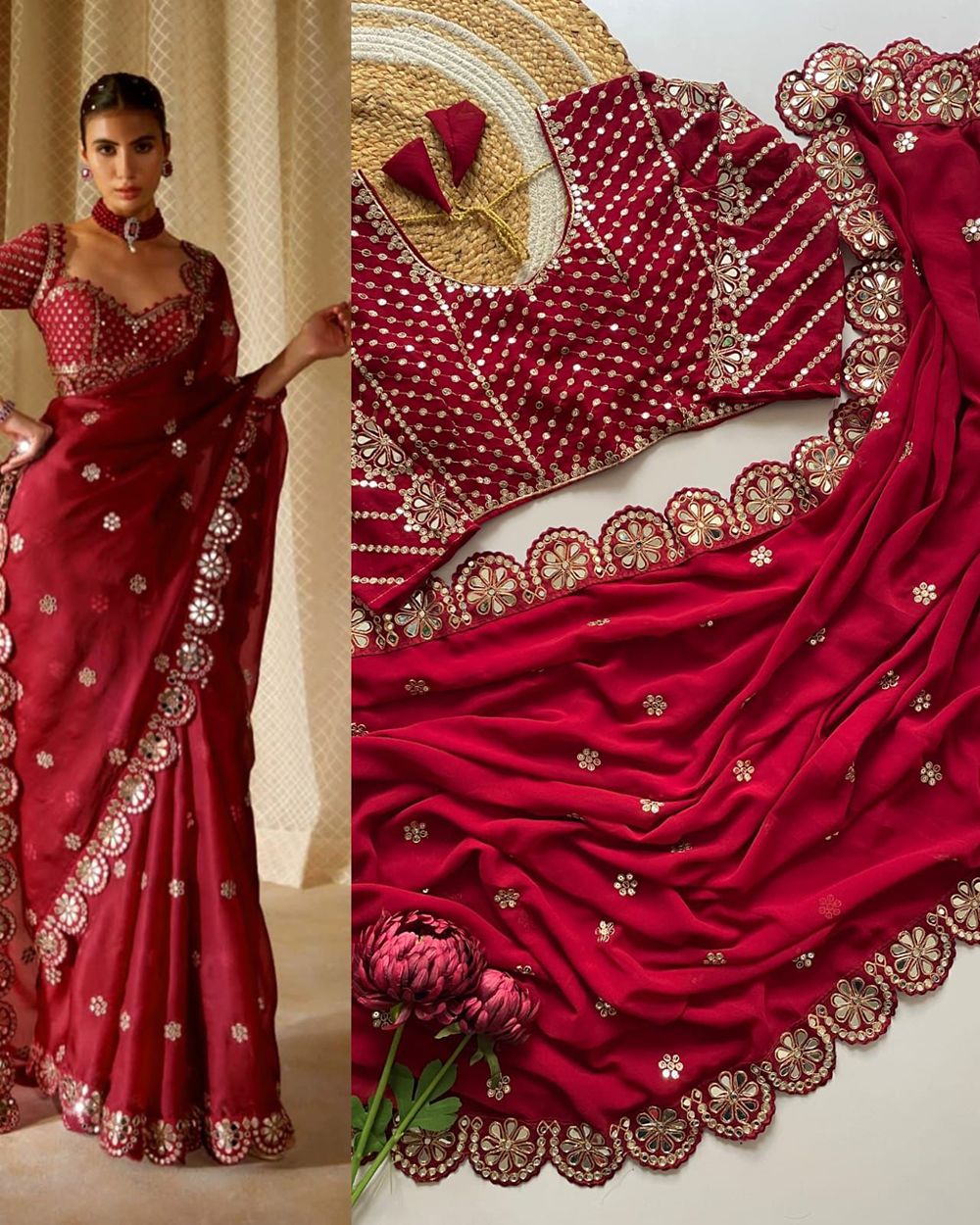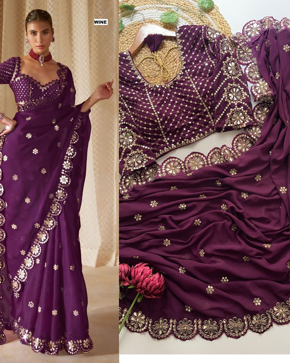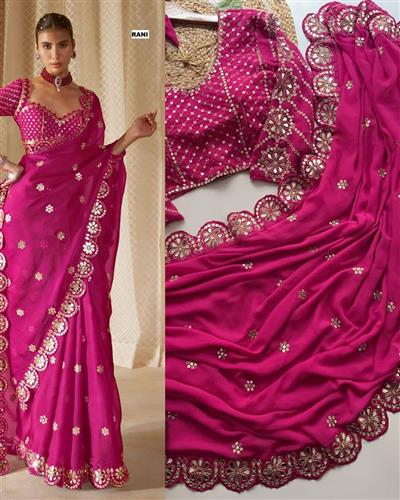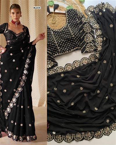 ✨ SAREE :- HEAVY SOFT GEORGETTE FABRIC ON BEAUTIFUL EMBRODERY SEQUANCE WITH CODING WORK IN LACE WITH CUT WORK BORDER WITH ORIGINAL REAL MIRROR WORK ON SAREE