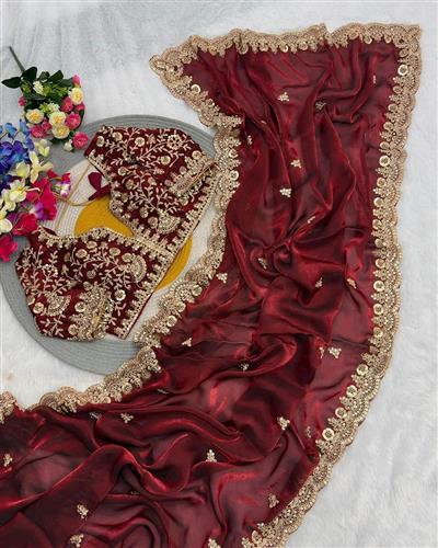 BLOUSE : PURE SOFT FANDY SATIN SILK FABRIC ON SEQUENCE AND CODING WORK ON BLOUSE WITH READY LACE ATTCHED IN SLEEVES