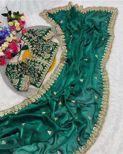 SAREE : PURE SOFT FANDY SATIN SILK FABRIC ON BEAUTIFUL C-PALLU EMBROIDERY SEQUENCES AND CODING WORK WITH CUT WORK BORDER IN SAREE