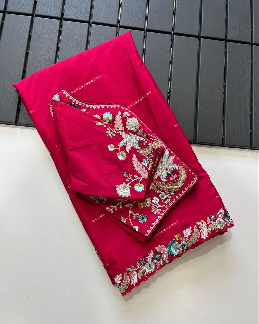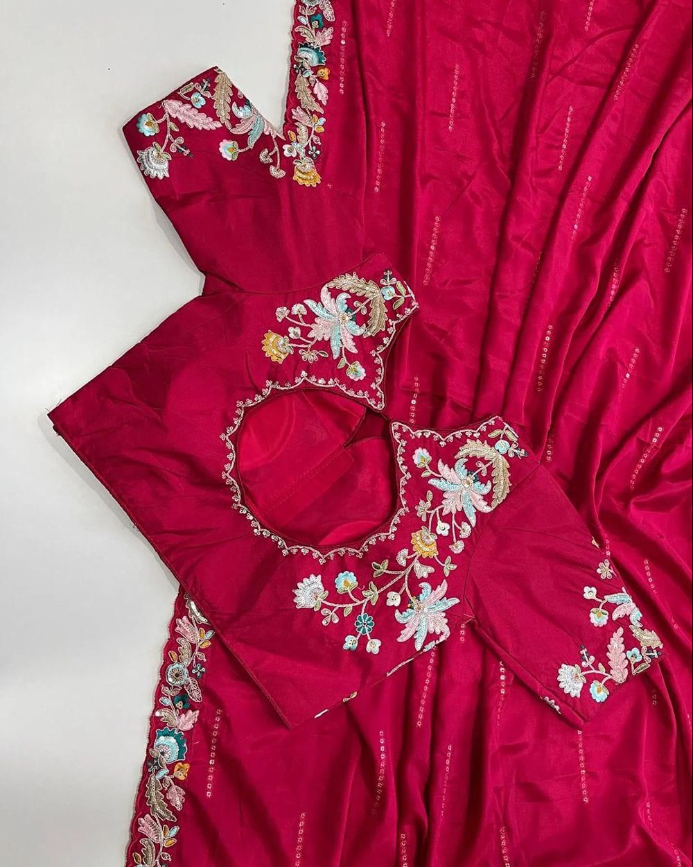 BLOUSE : HEAVY MONO BANGLORY SILK FABRIC ON BEAUTIFUL EMBROIDERY 5 MM SEQUENCES WITH MULTI THREAD WORK ON BLOUSE