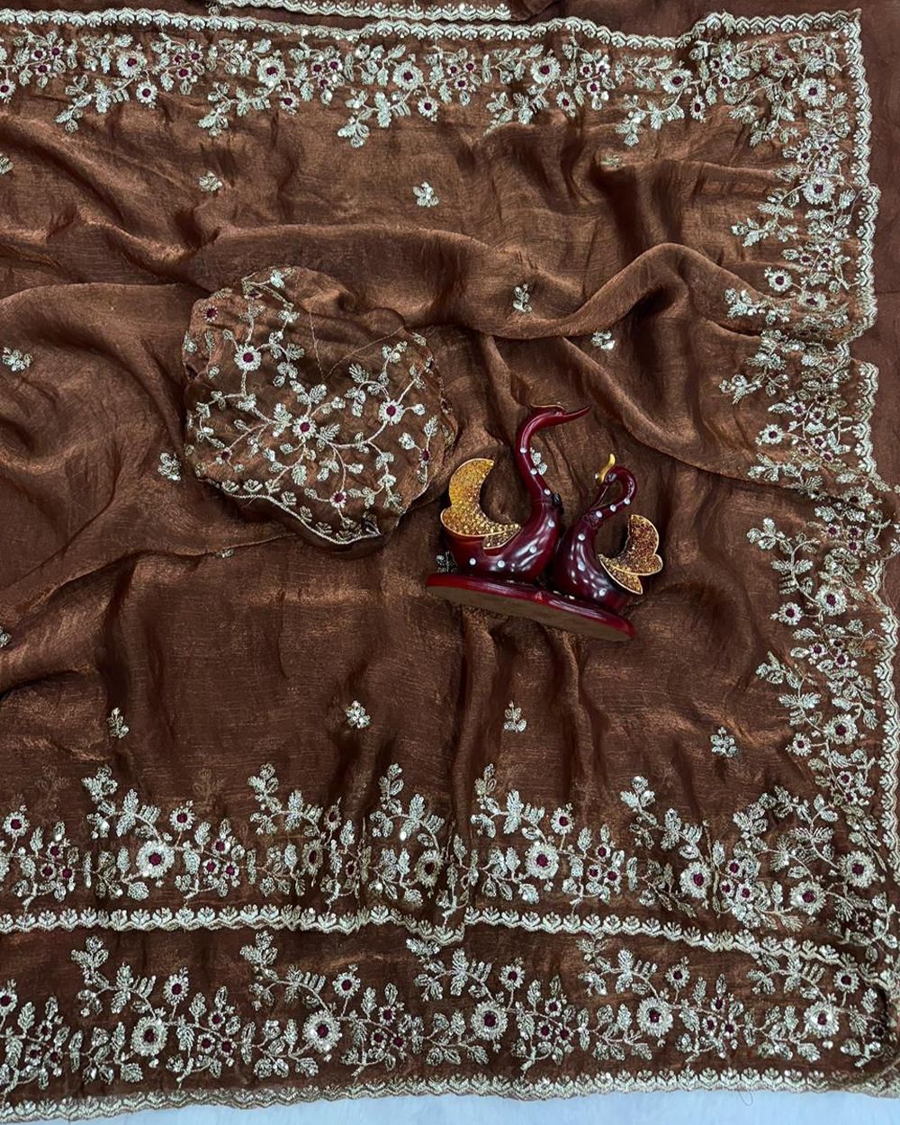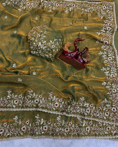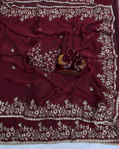 ➡️ BLOUSE : HEAVY SOFT FANDY CHIFFON SILK FABRIC ON EMBROIDERY ZARI & SEQUENCES WORK ON BLOUSE