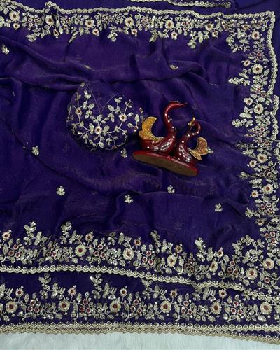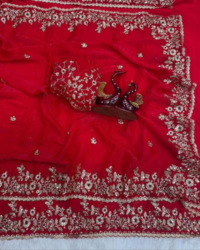 ➡️ SAREE : HEAVY SOFT FANDY CHIFFON SILK FABRIC ON HEAVY EMBROIDERY C-PALLU ZARI & SEQUENCES WORK WITH CUT WORK BORDER ON SAREE