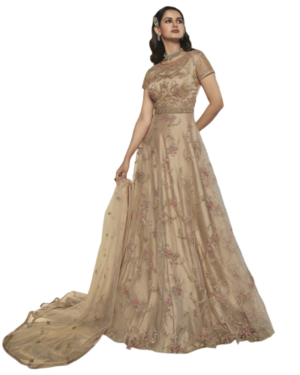 Sleeves :- Heavy Butterfly Net with Embroidery Codding Work With Sequences